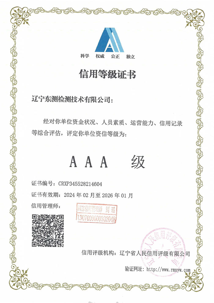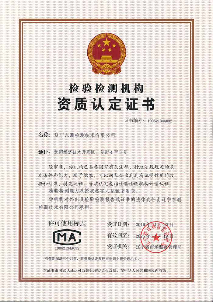 遼寧東測檢測技術(shù)有限公司成立于2007年6月21日,專注于為客戶提供計量、檢測以及技術(shù)咨詢與培訓(xùn)的第三方計量檢測機構(gòu)。遼寧東測檢測技術(shù)有限公司通過了中國合格評定國家認可委員會認可(CNAS),獲得檢驗檢測機構(gòu)資質(zhì)認定(CMA),憑借著高效的服務(wù)網(wǎng)絡(luò)、雄厚的技術(shù)實力以及全面的業(yè)務(wù)范圍,本著“科學(xué)、公正、準(zhǔn)確、真誠”的質(zhì)量方針,為社會提供優(yōu)質(zhì)計量檢測服務(wù),打造國內(nèi)具有價值的計量技術(shù)機構(gòu)。